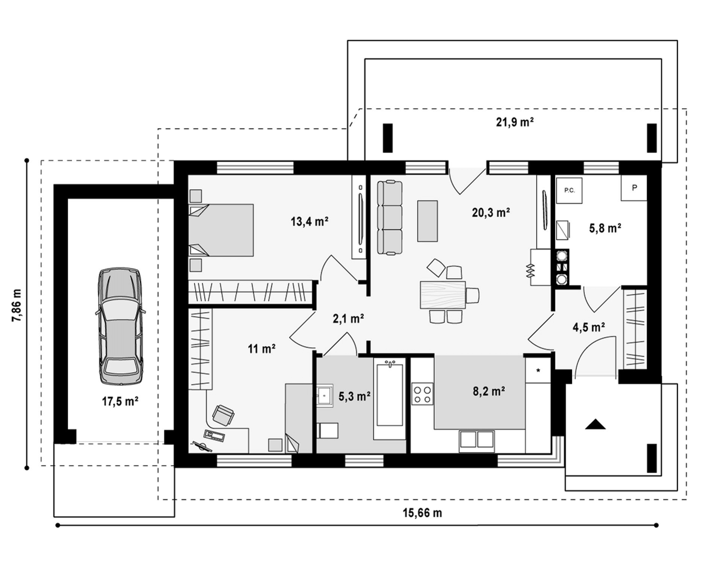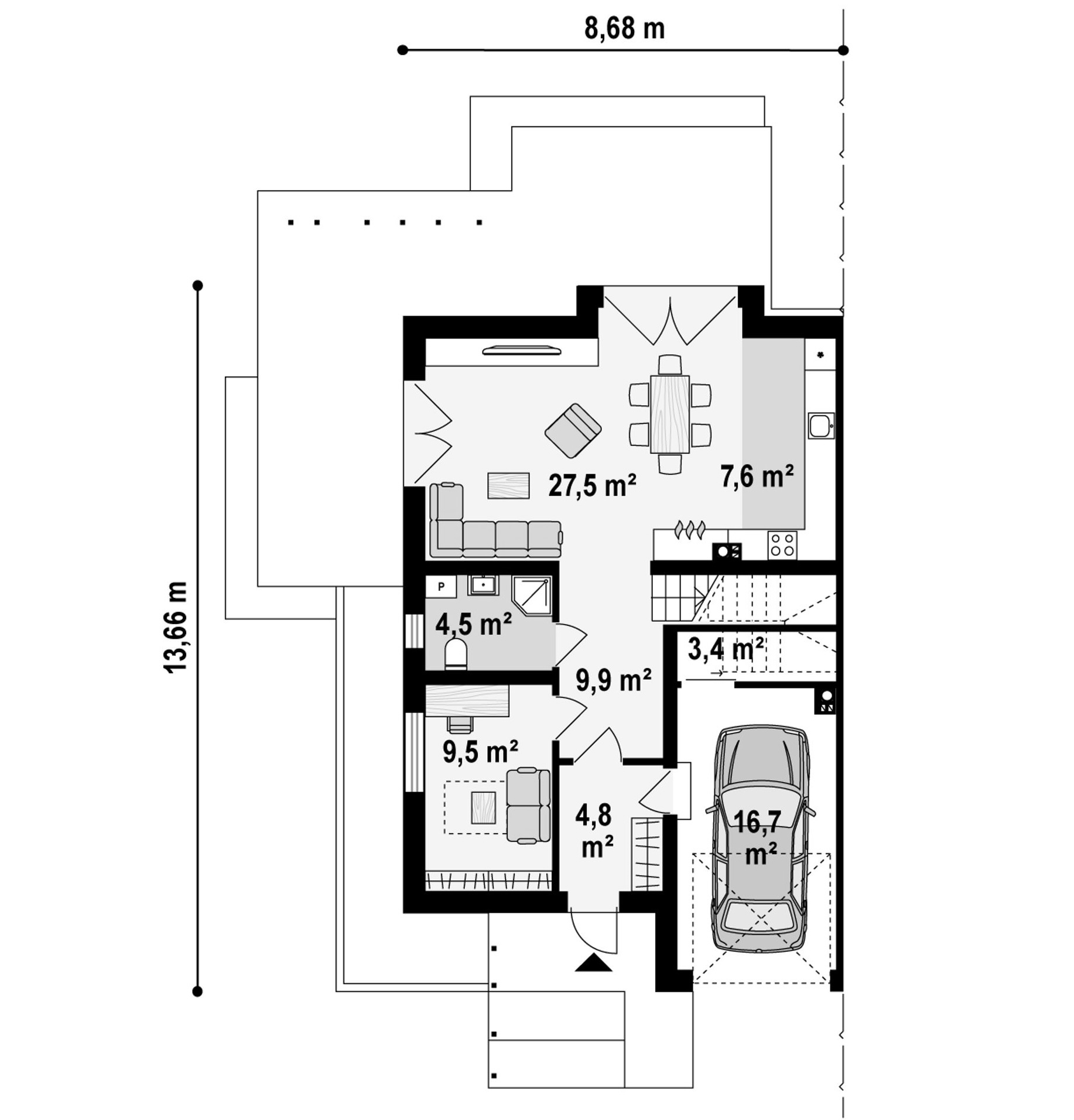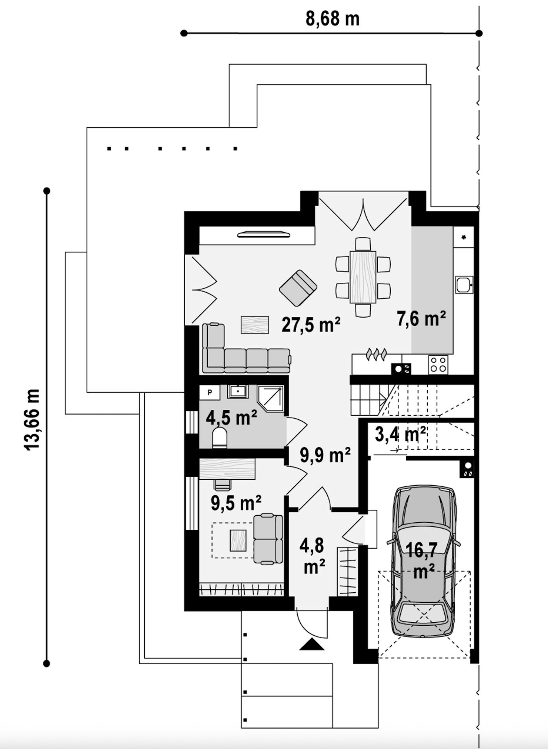 Maja mõõtmed 13.66 x 8.66 m