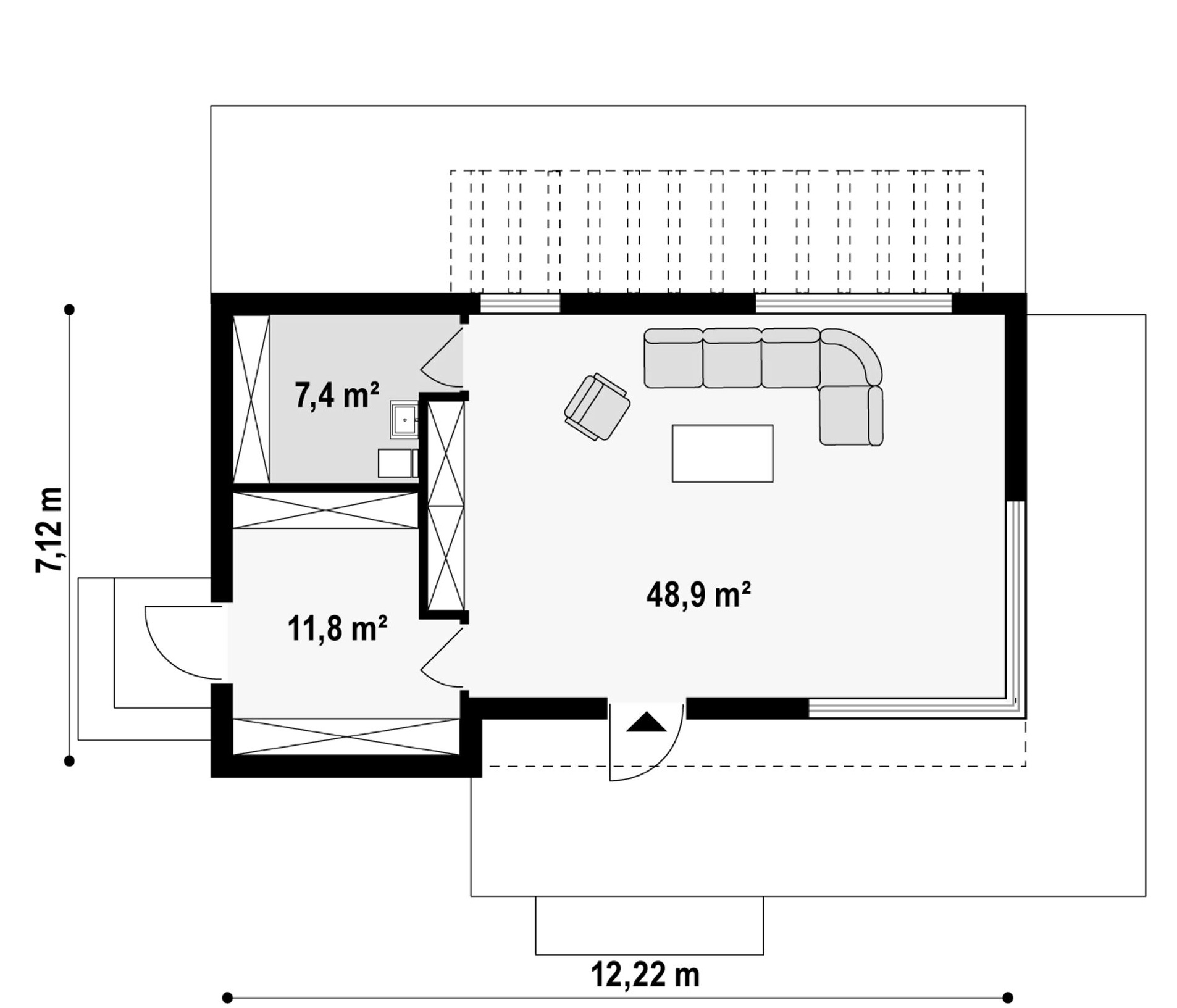 Maja mõõtmed 7.12 x 12.2 m