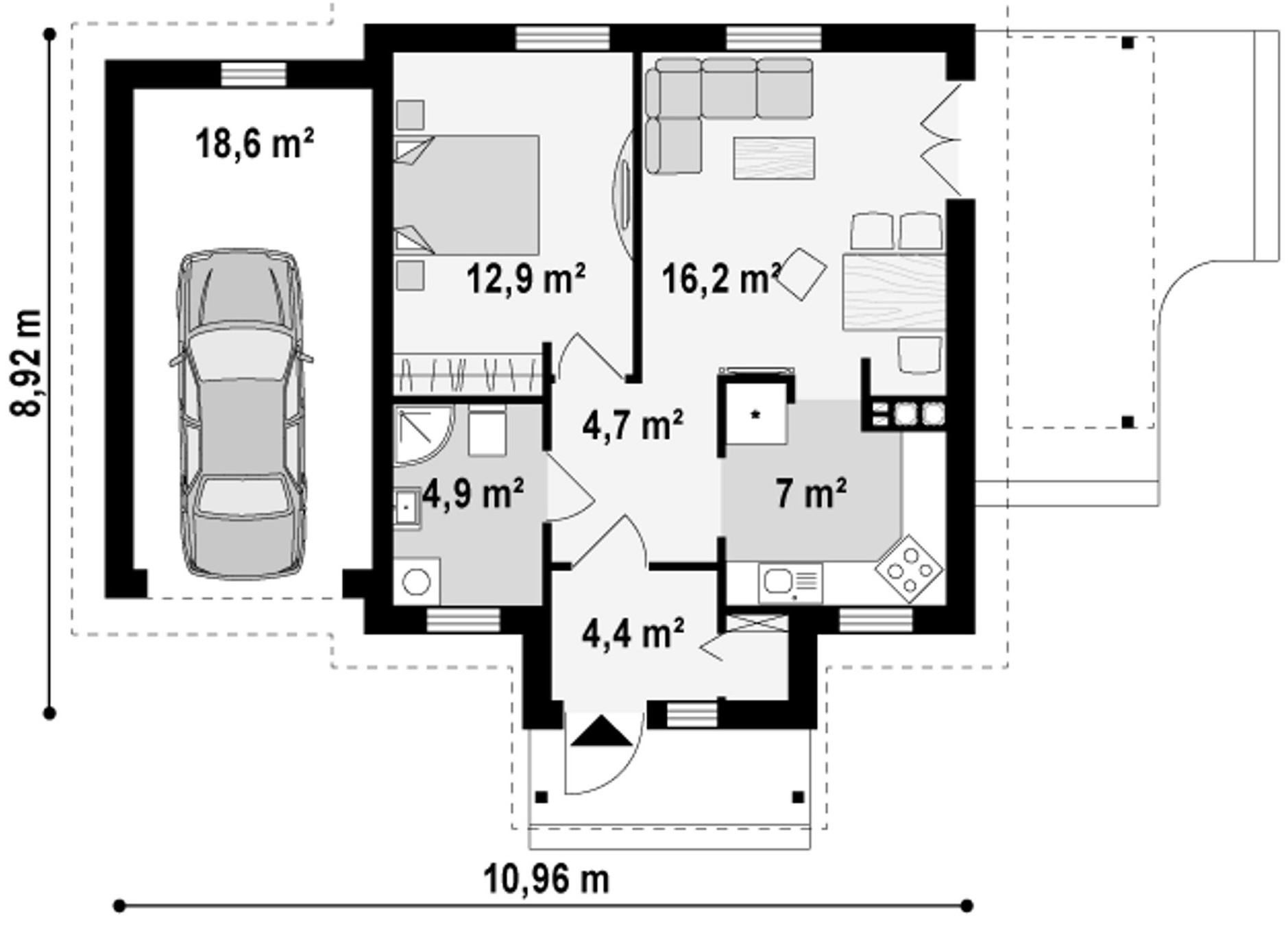 Maja mõõtmed 8.92 x 10.96 m
