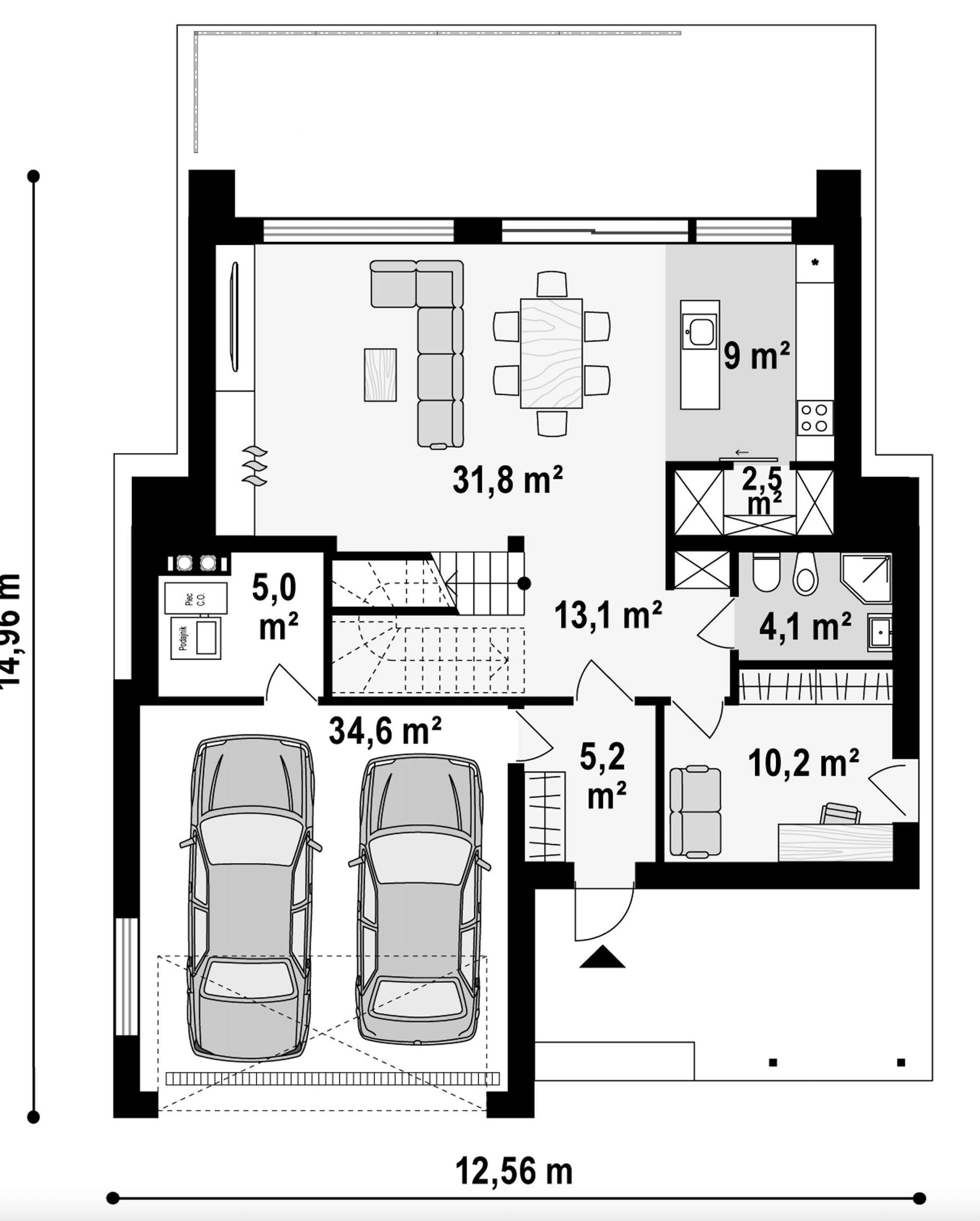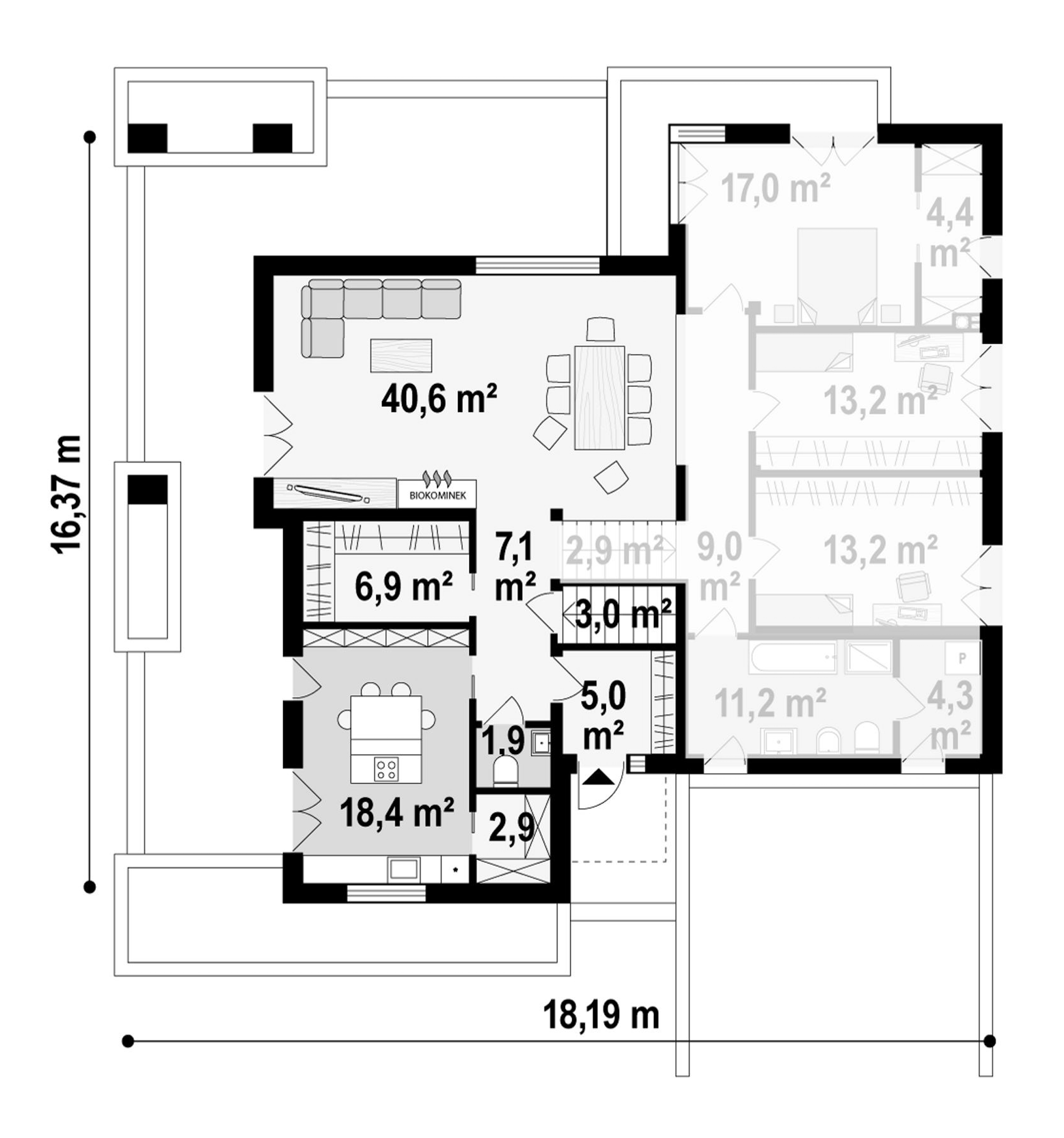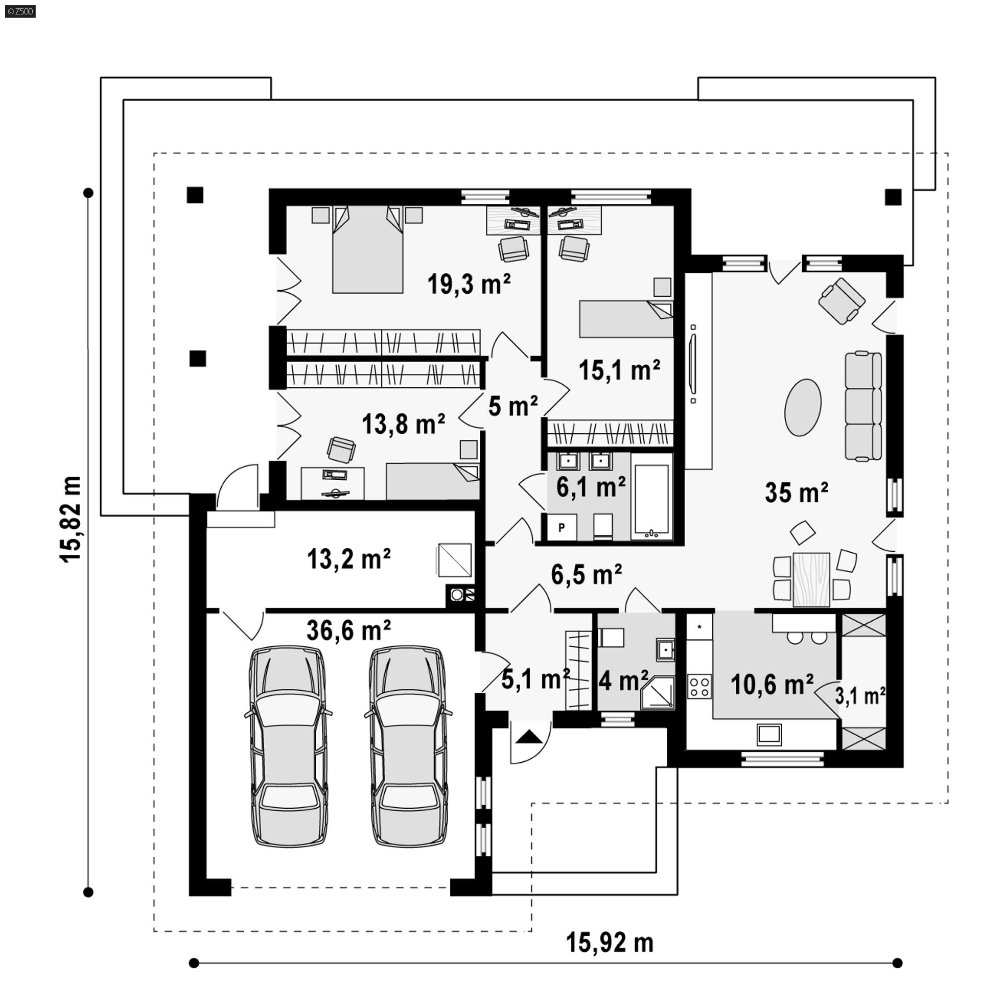 Maja mõõtmed 14.96 x 13.16 m