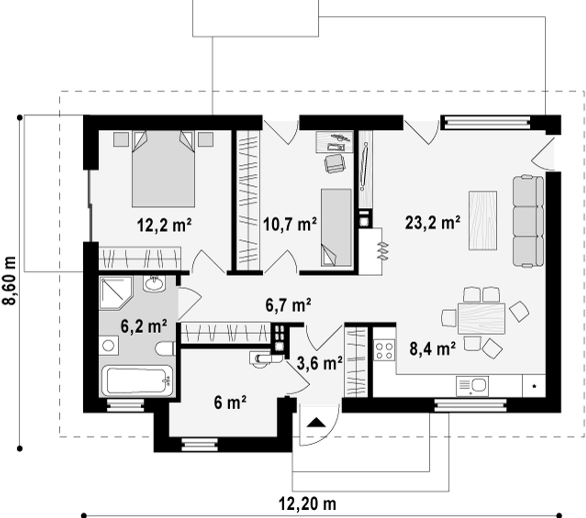 Maja mõõtmed 8.6 x 12.2 m