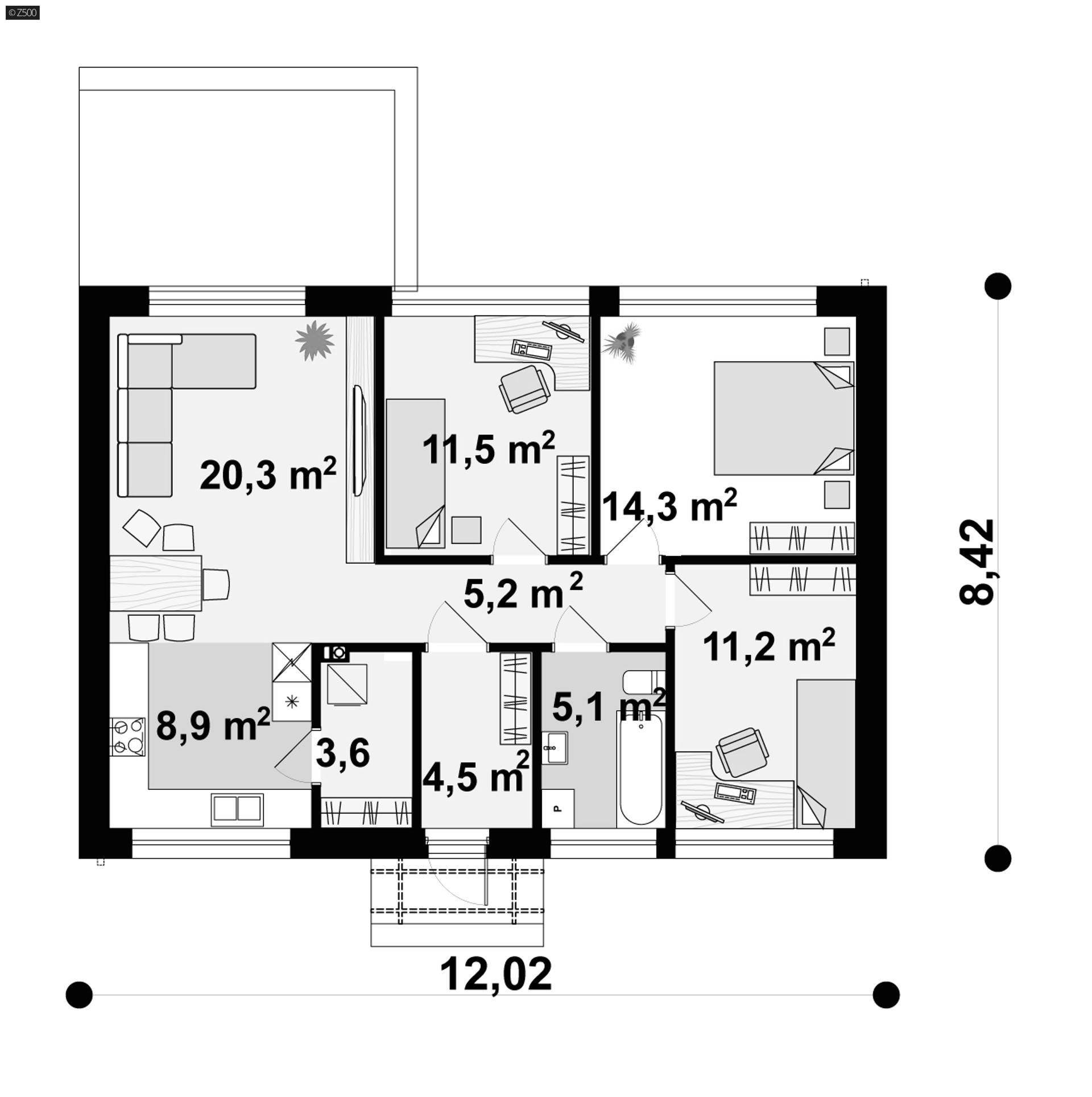 Maja mõõtmed 8.42 x 12.02 m
