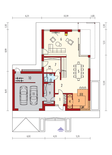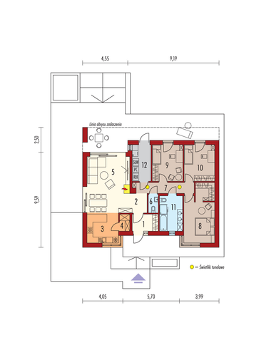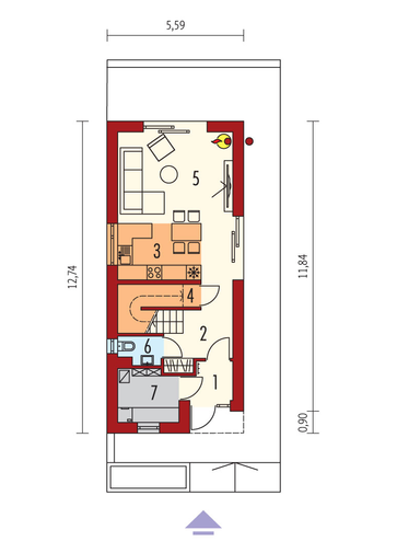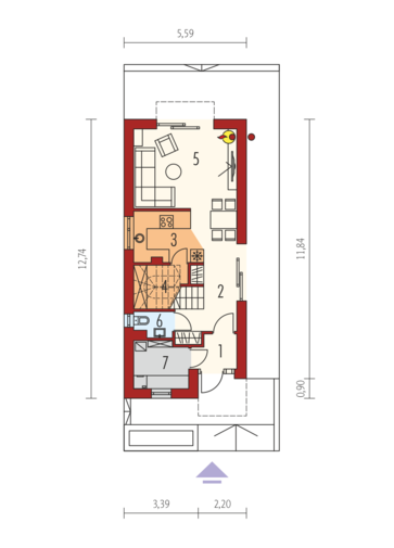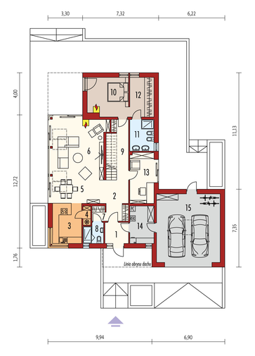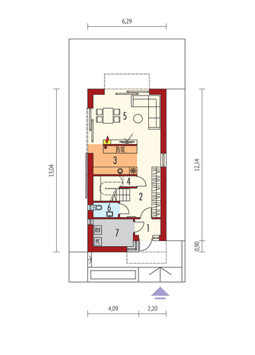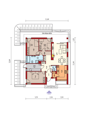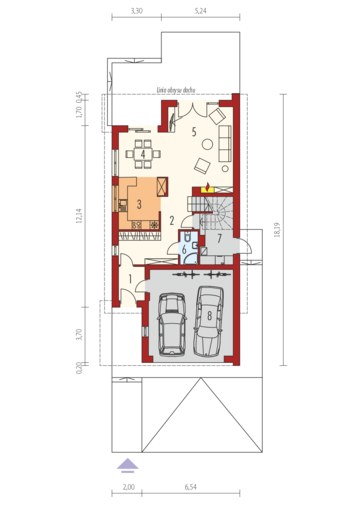 Maja mõõtmed 12.34 x 26.64 m