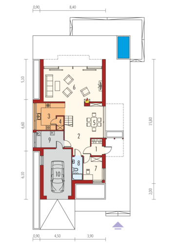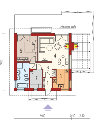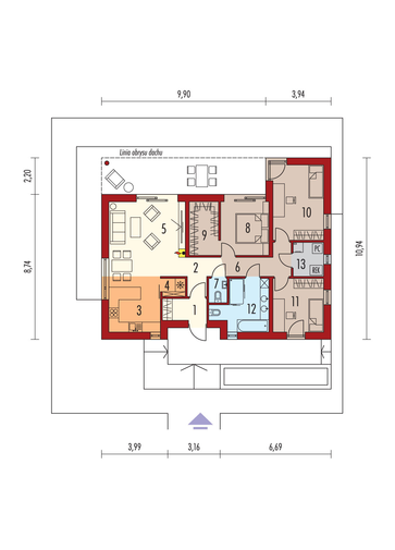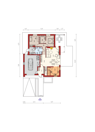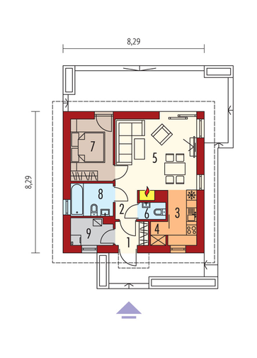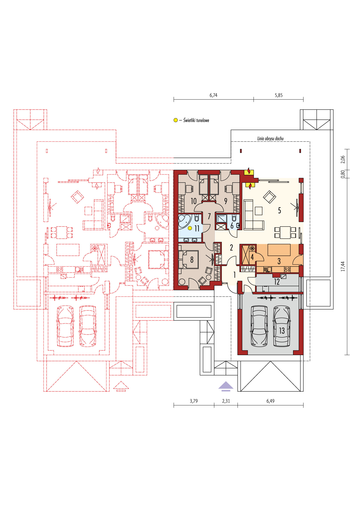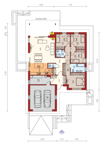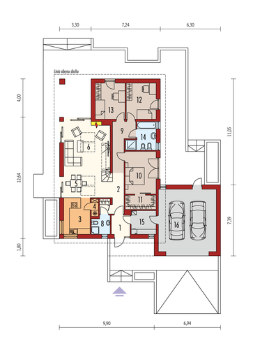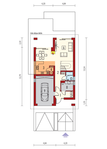 Maja mõõtmed 16.84 × 18.48 m