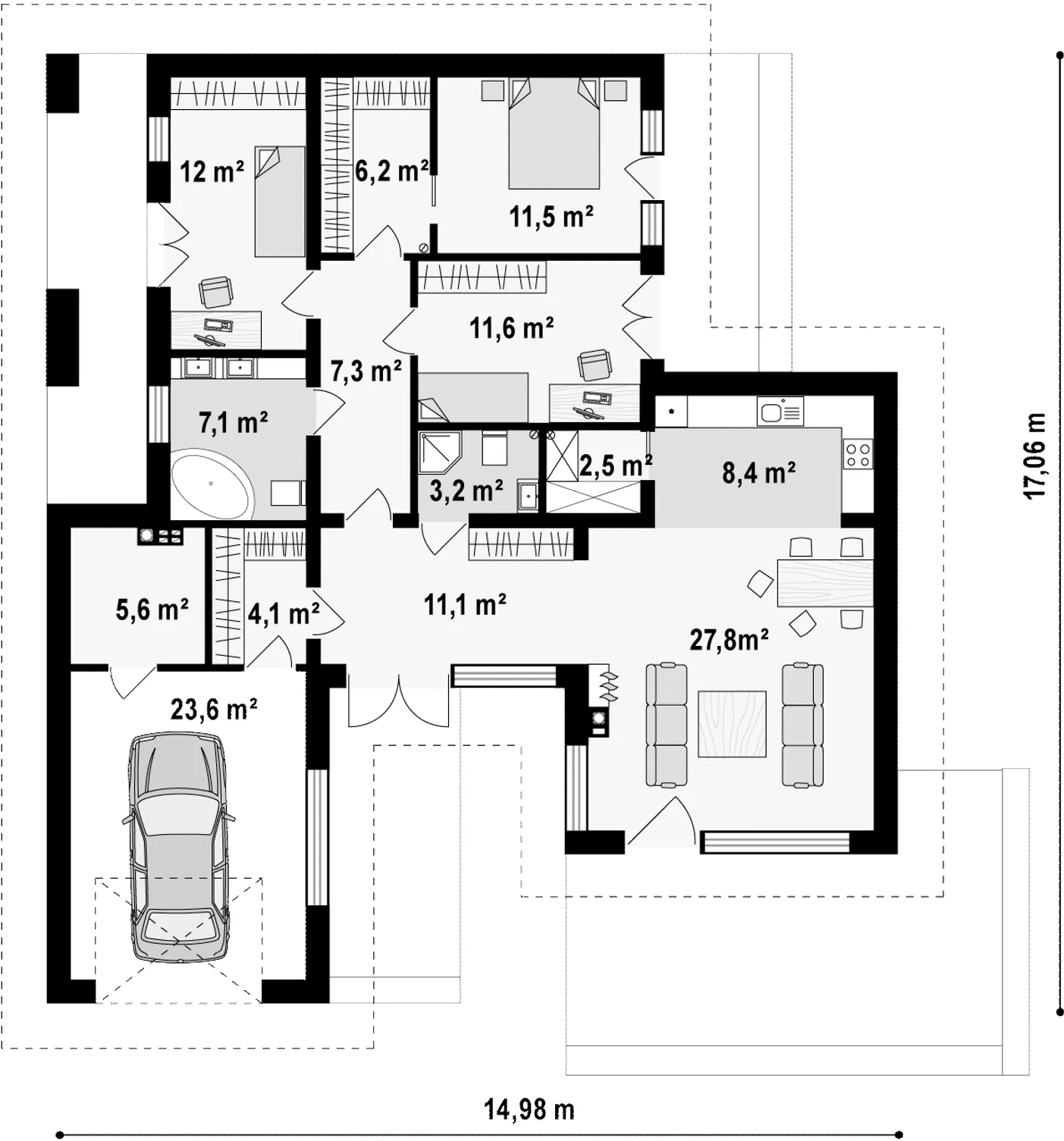 Maja mõõtmed 17.06 x 14.98 m