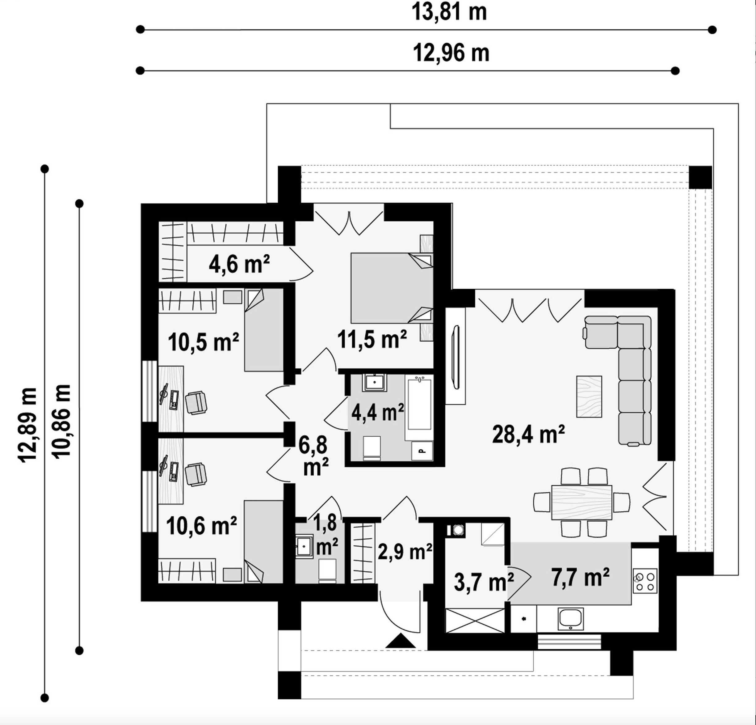 Maja mõõtmed 12.89 x 13.81 m