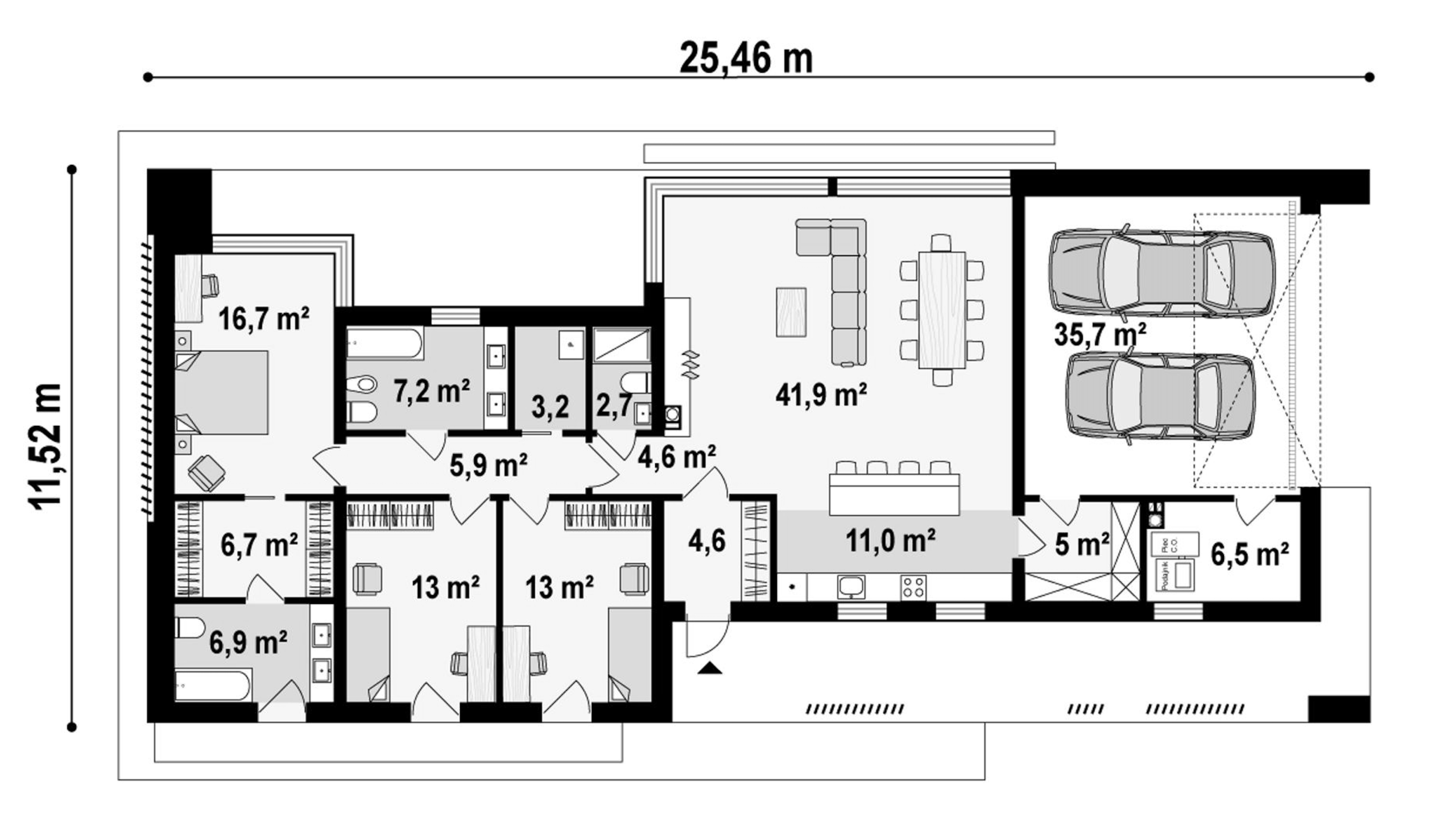 Maja mõõtmed 11.52 x 25.46 m