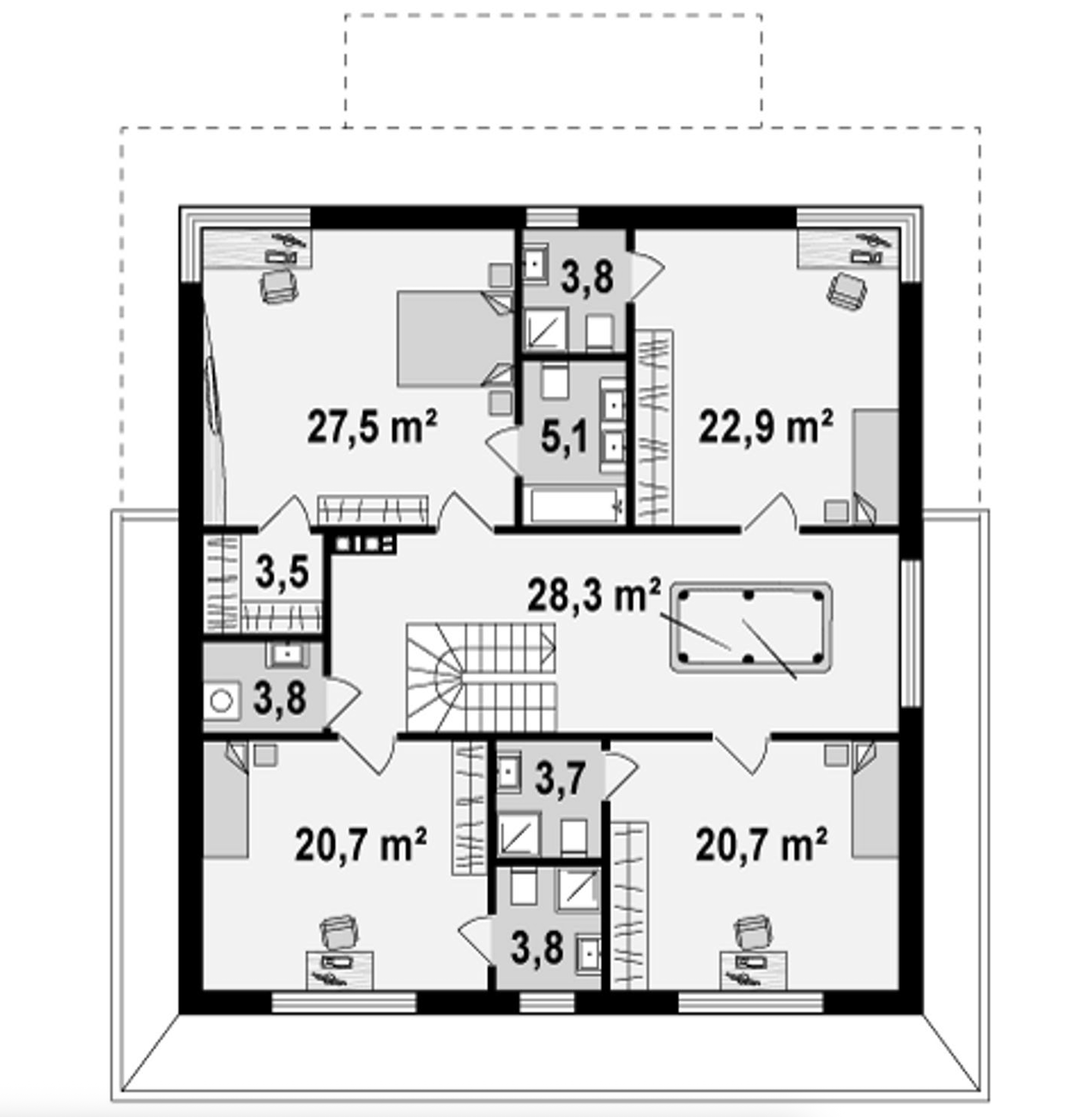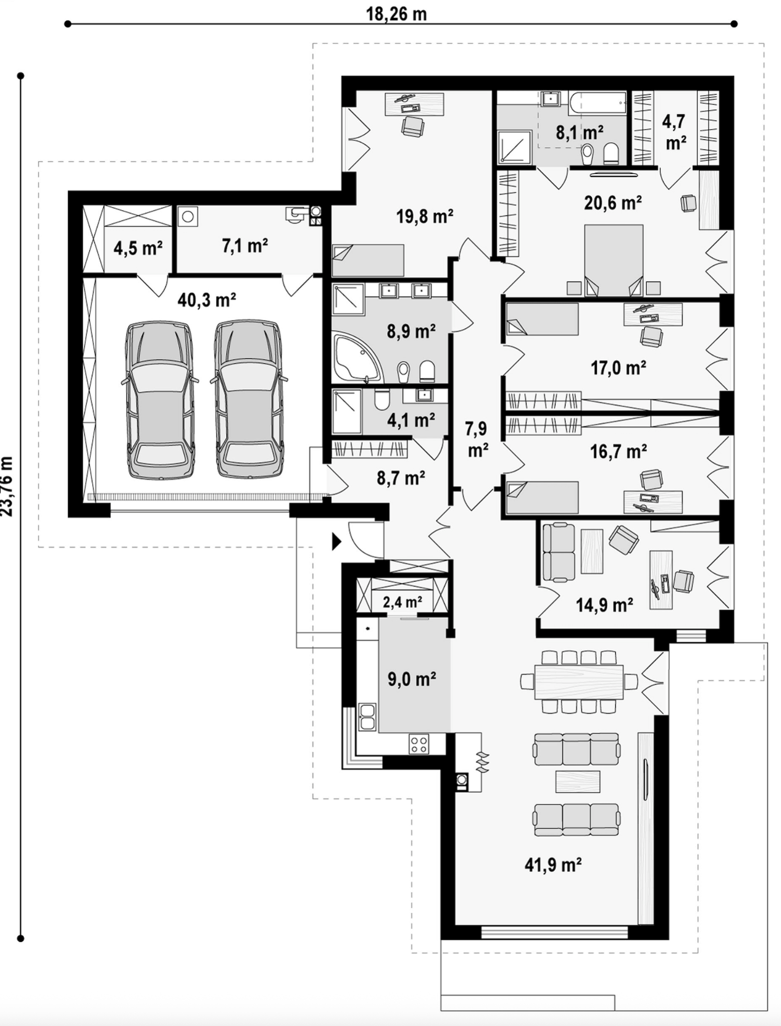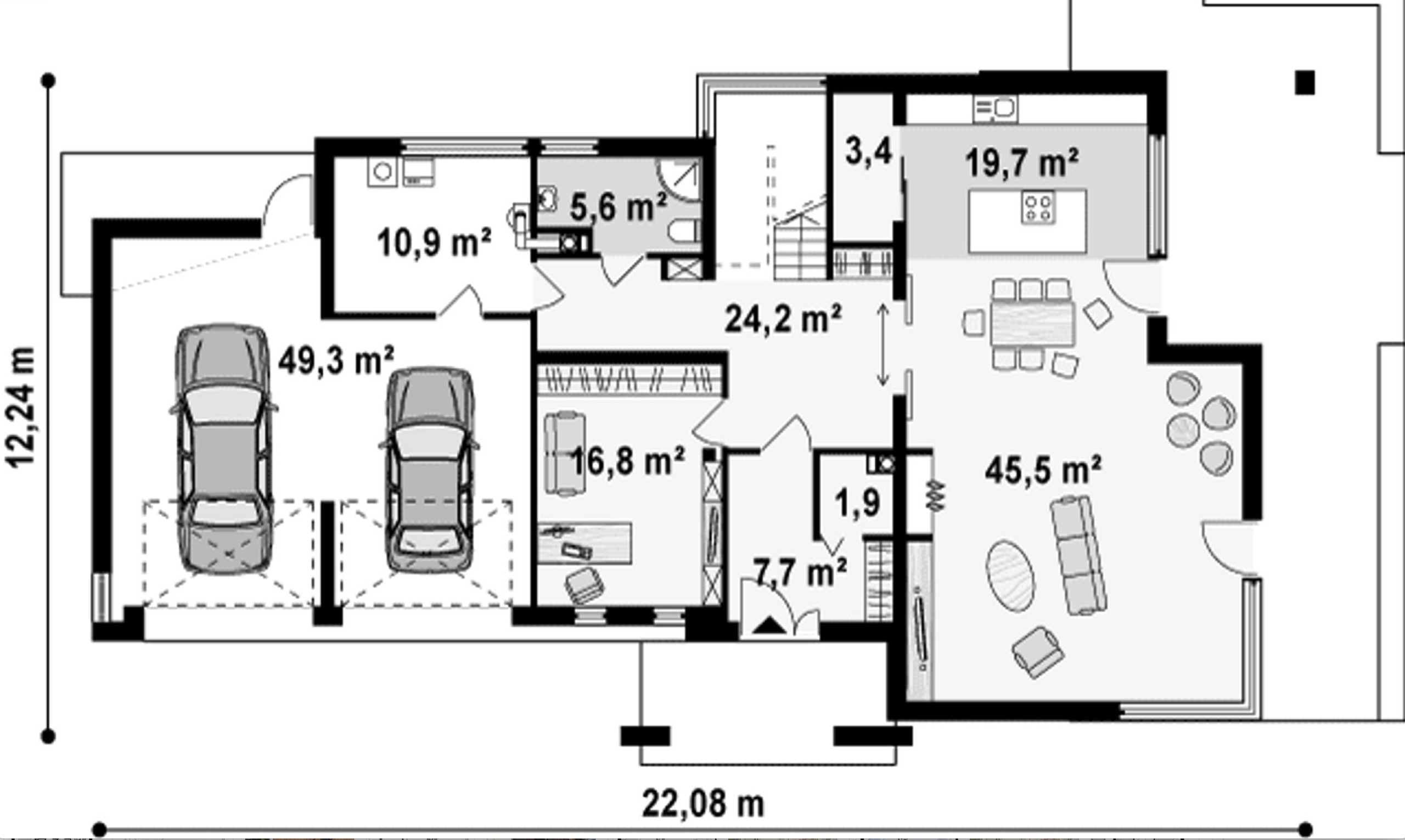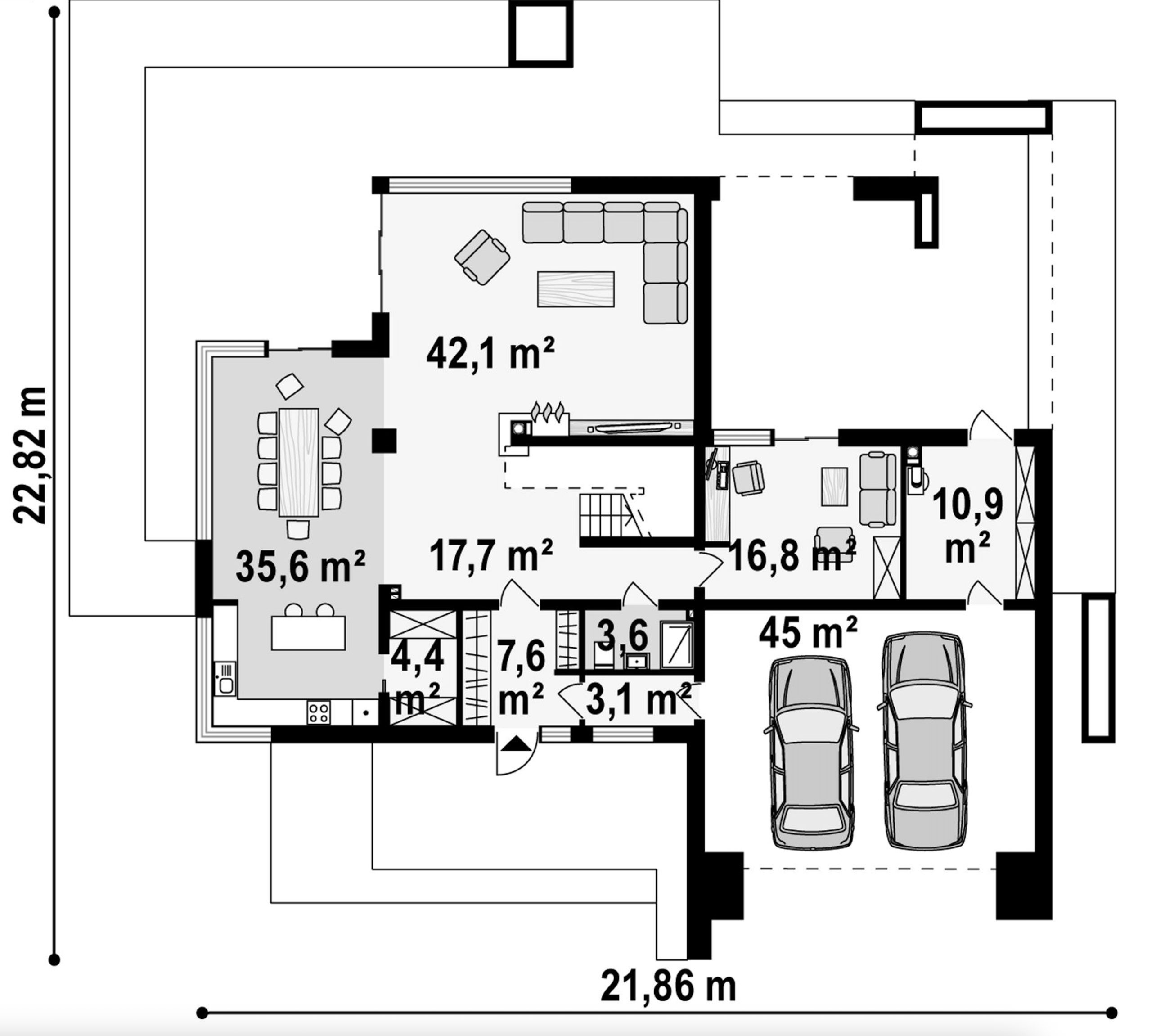 Maja mõõtmed 22.82 x 21.86 m