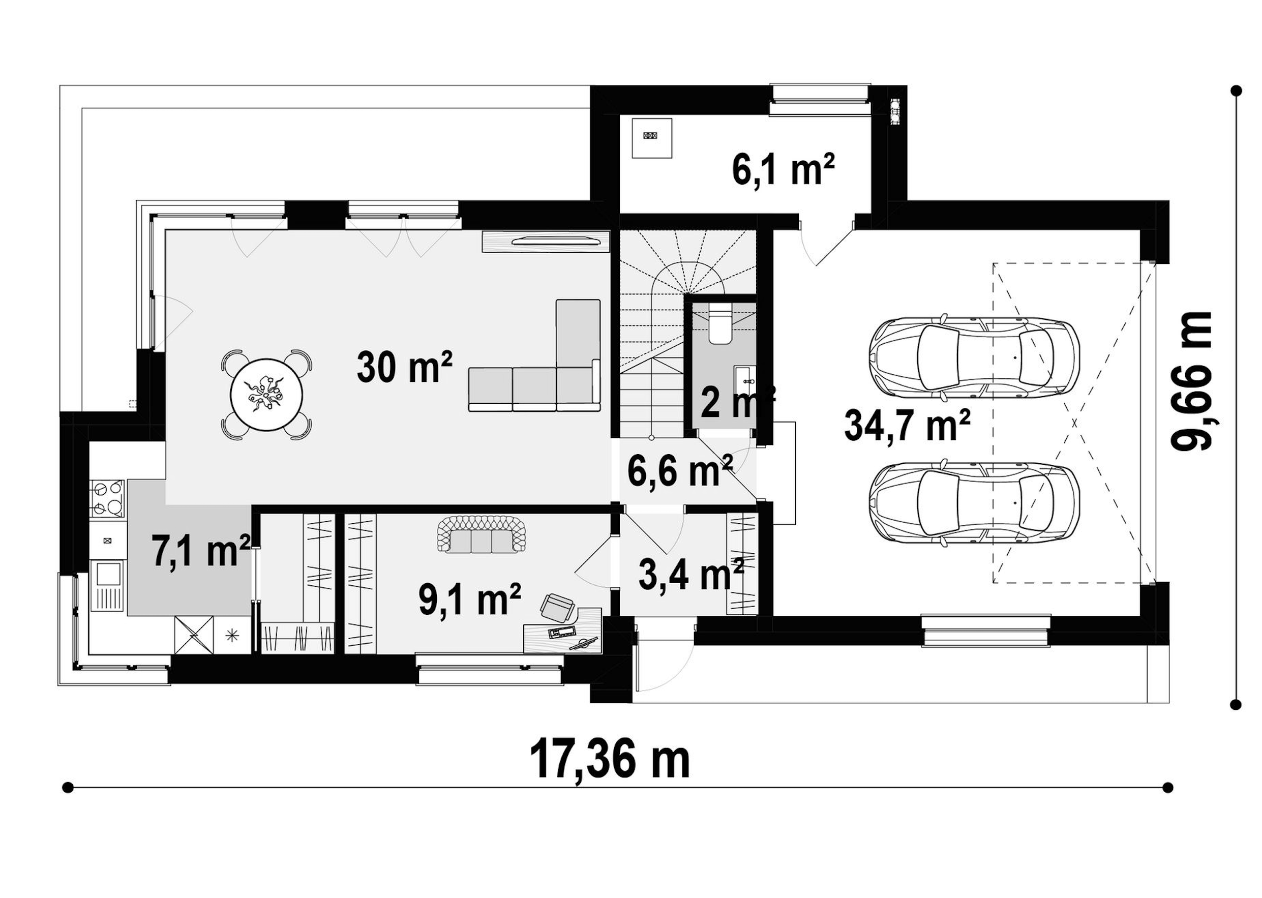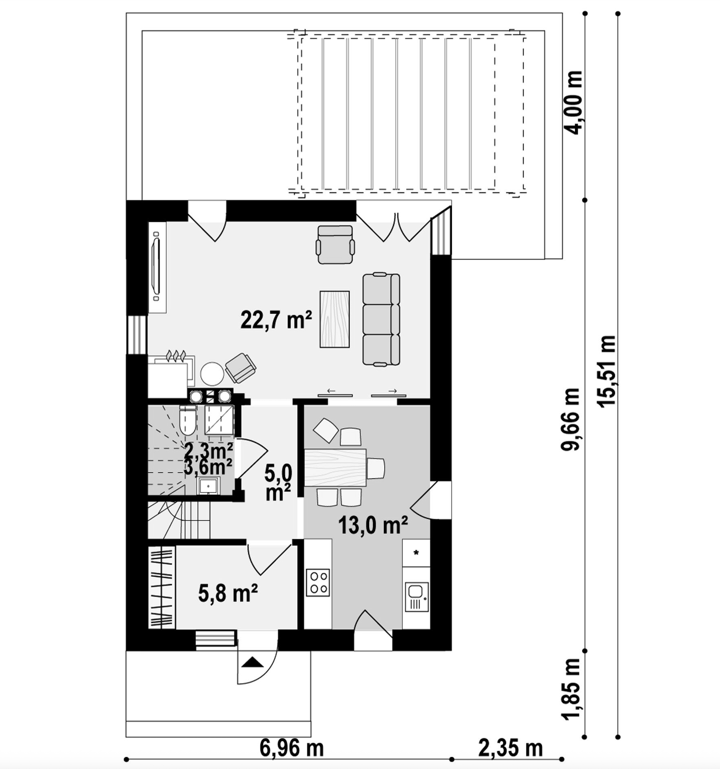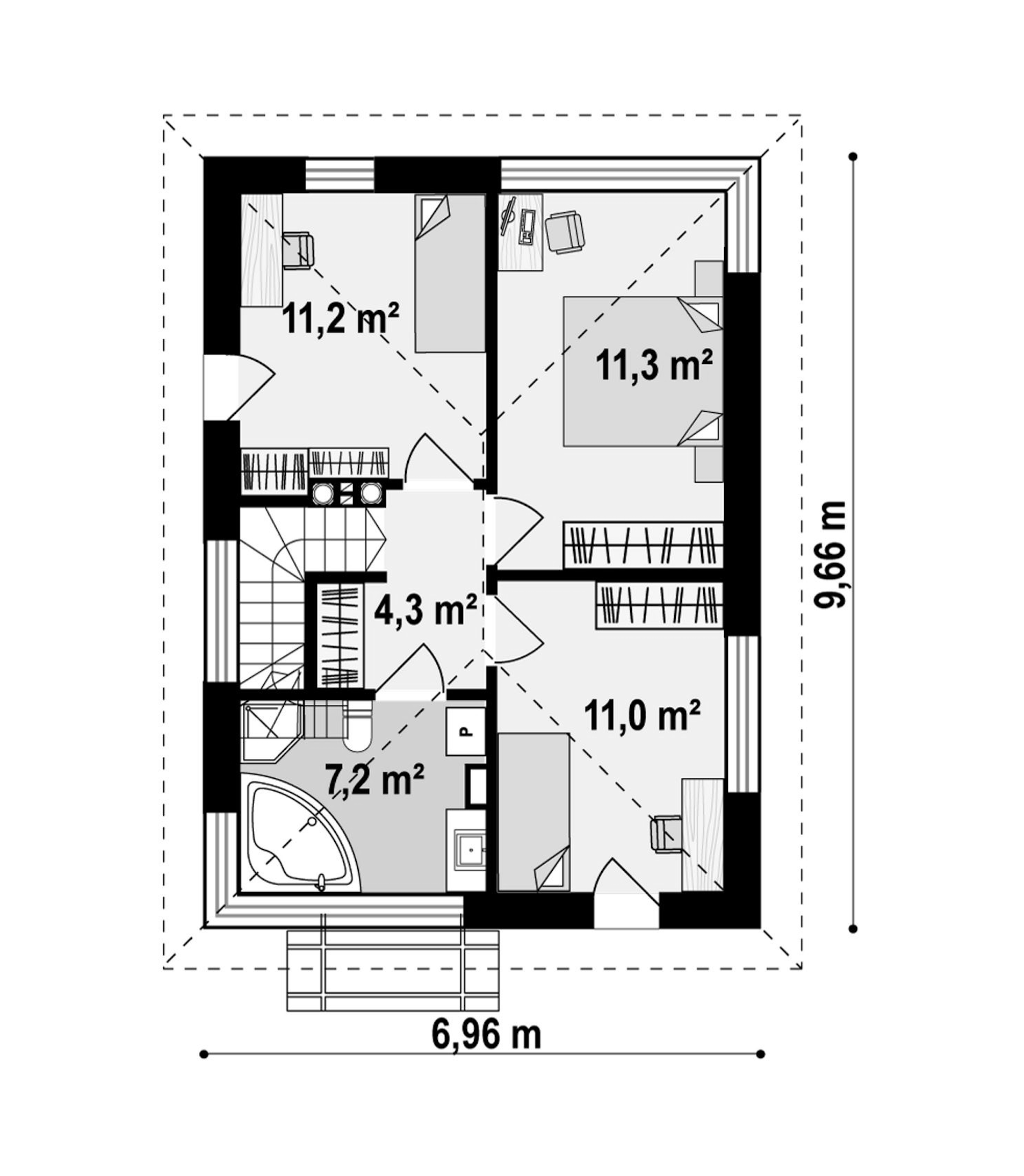 Maja mõõtmed 9.66 x 6.96 m