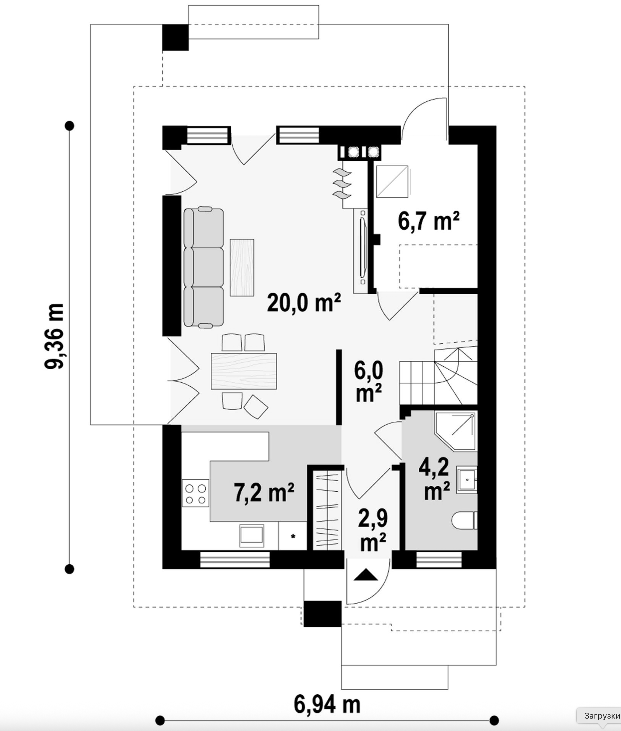 Maja mõõtmed 9.36 x 6.96 m