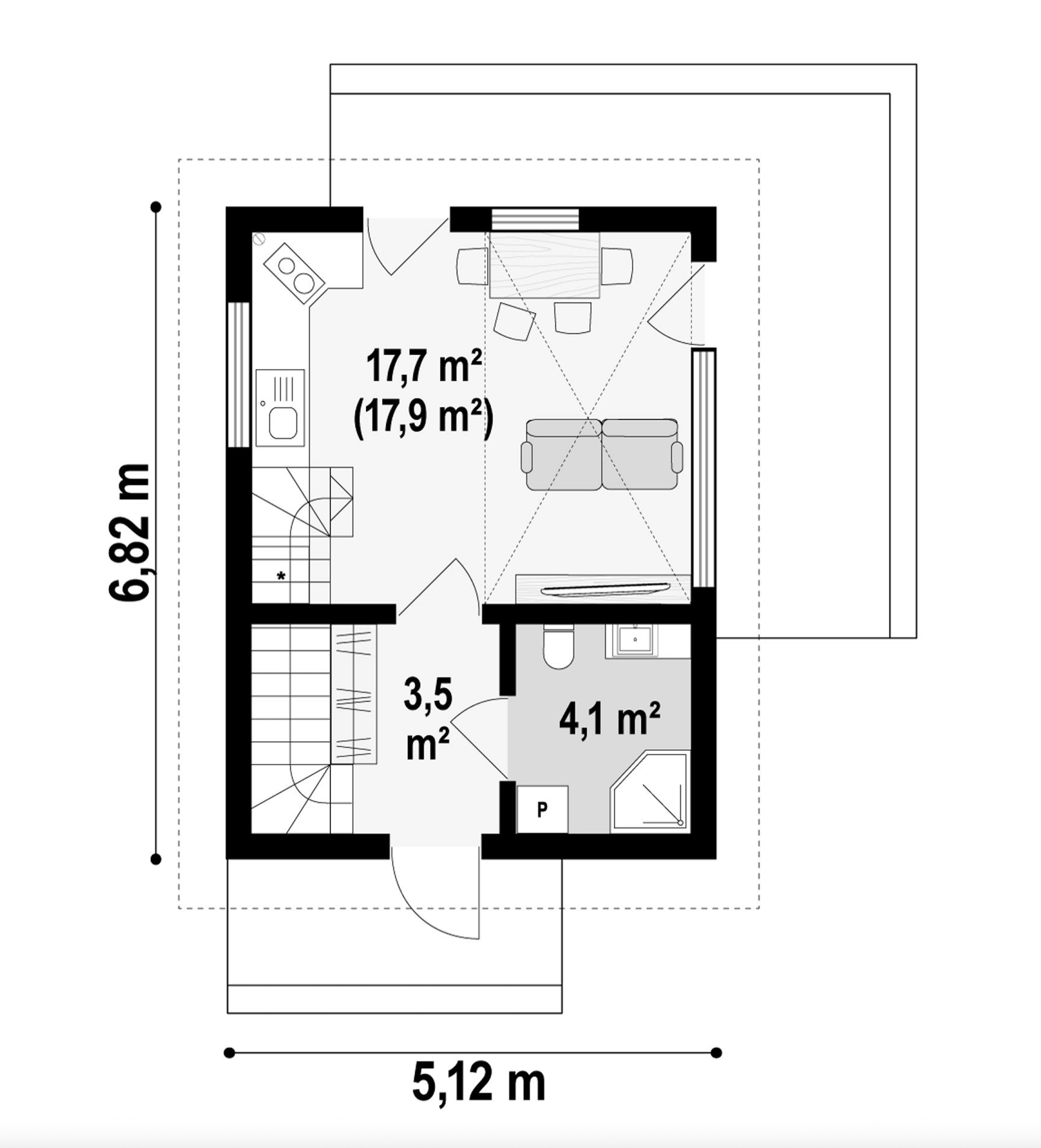 Maja mõõtmed 6.82 x 5.12 m