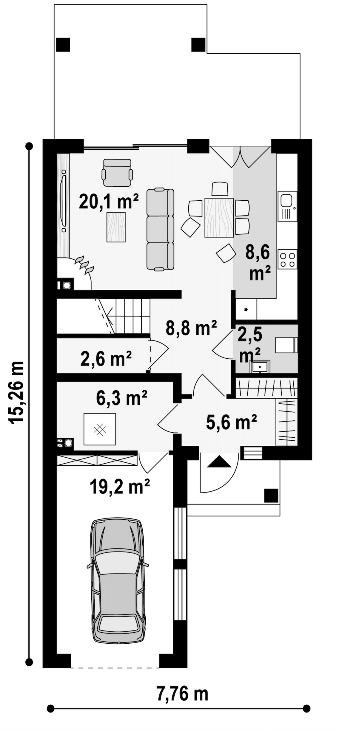 Maja mõõtmed 15.26 x 7.76 m