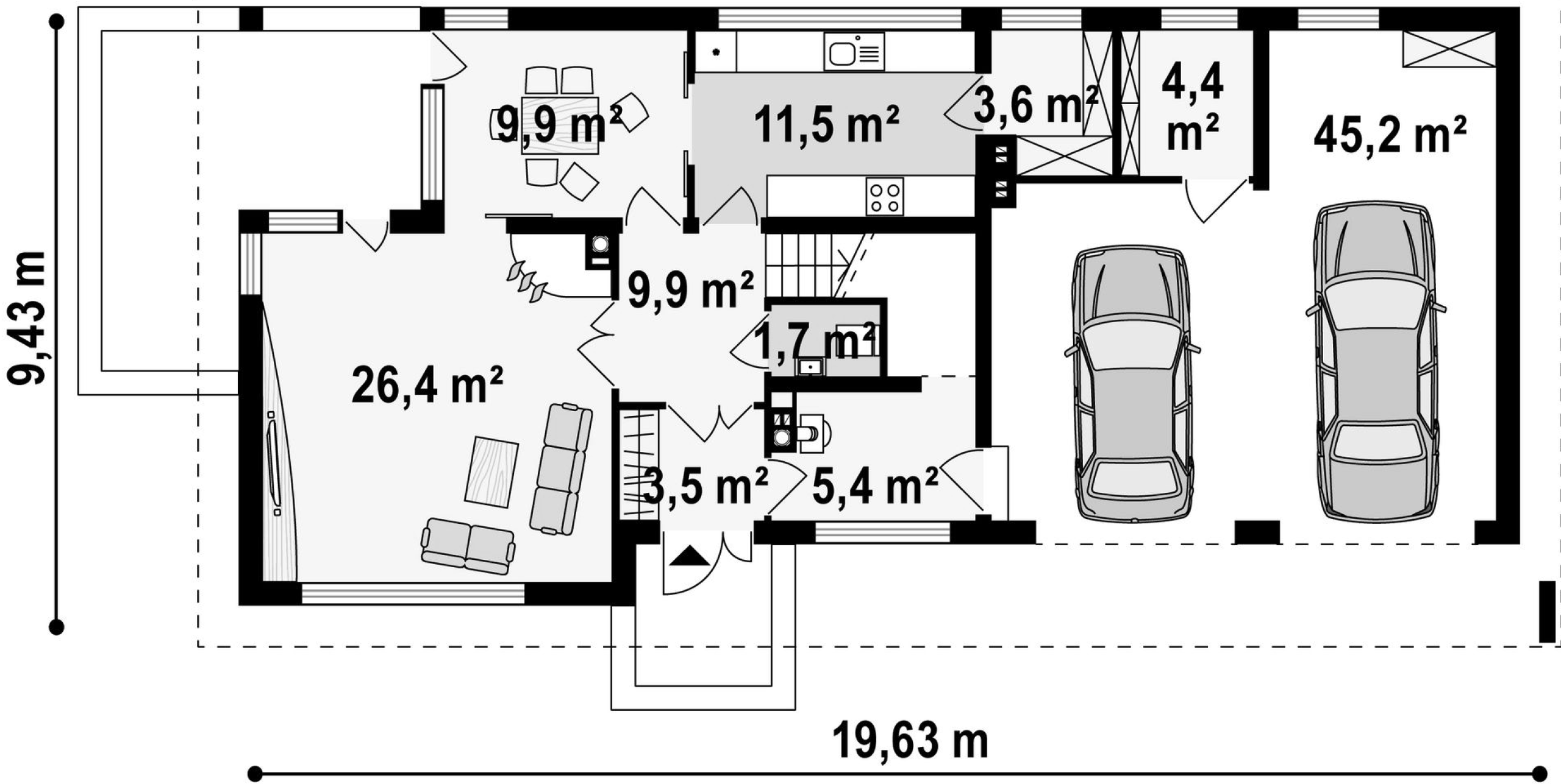 Maja mõõtmed 9.43 x 19.63 m