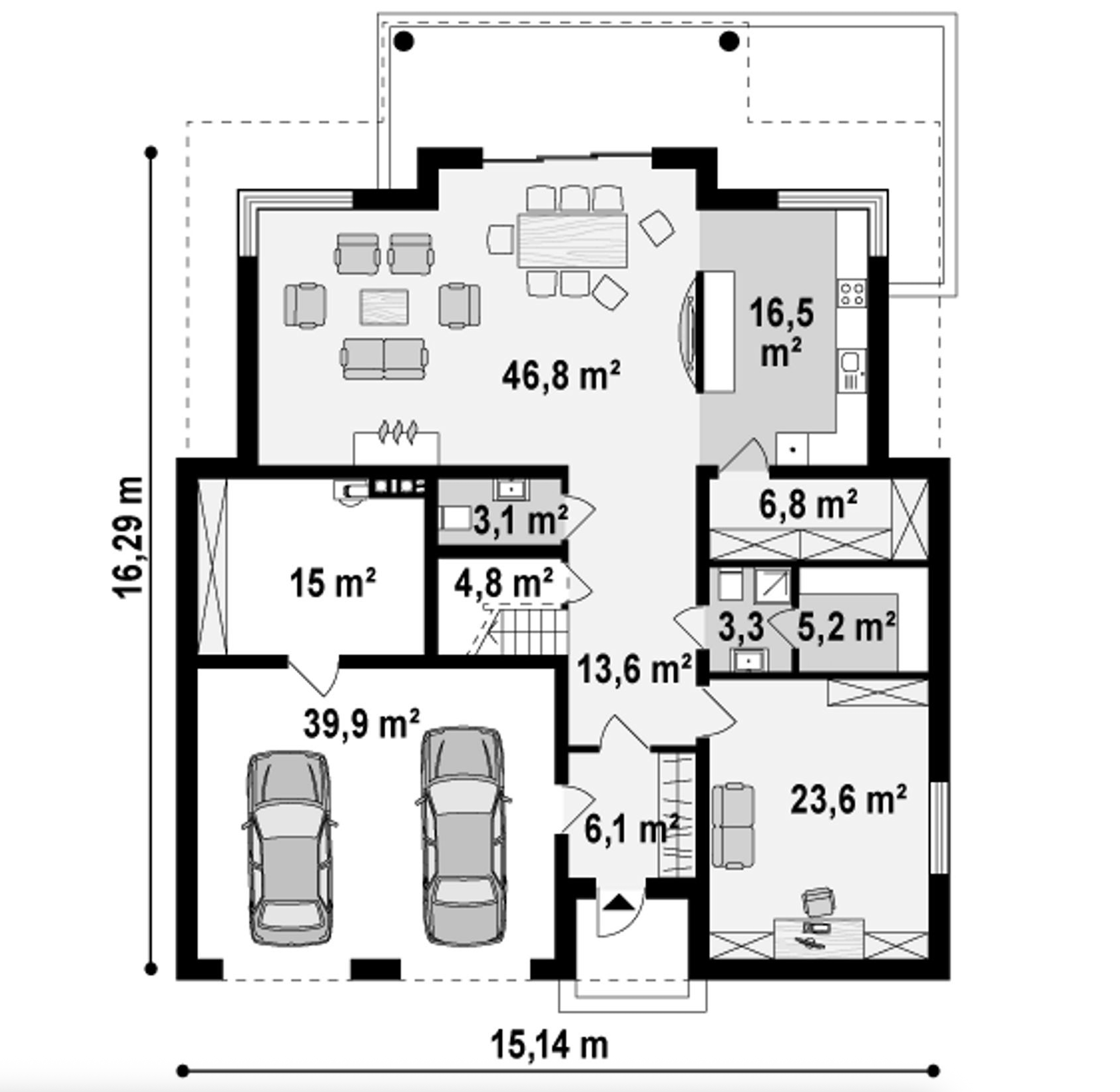 Maja mõõtmed 16.29 x 15.14 m