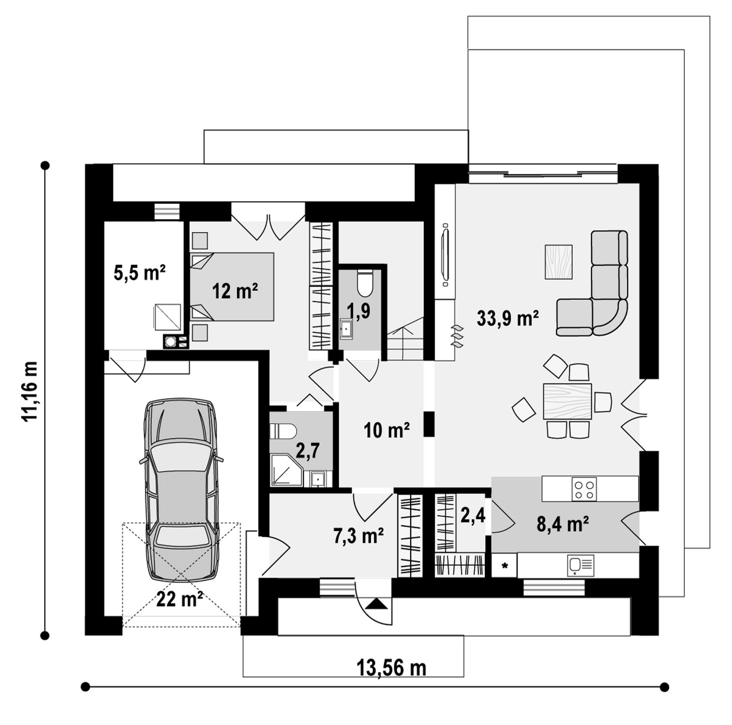 Maja mõõtmed 11.16 x 13.56 m