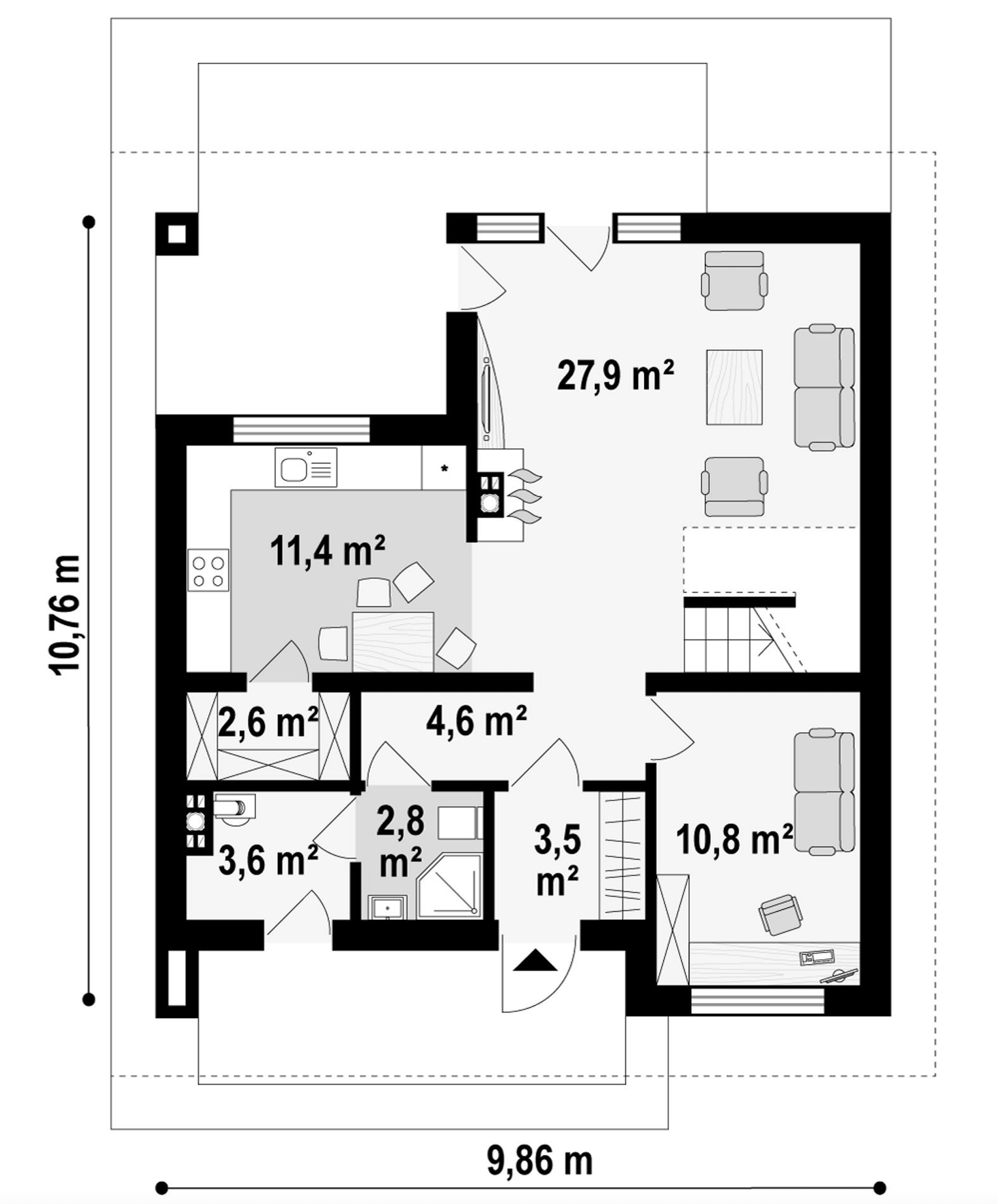 Maja mõõtmed 10.76 x 9.86 m